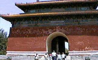 We discovered that tourists gained entrance to the Ming Tombs very much like visiting the Temple of Heaven--you entered a gatehouse, then walked for nearly a mile along a landscaped promenade! Here's the gatehouse.