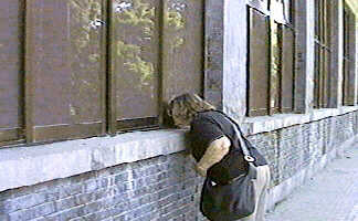 Dot, with unabashed curiosity, peers into the bath house. The hot springs were a nice place--but we left without a clue of how the ritual bathing was conducted.