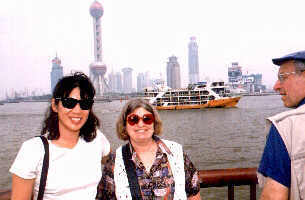 Nowadays the Shanghai waterfront is known as The Bund. It is an elevated, landscaped, grand promenade. The busy waterways of Shanghai harbor are on the seaward side. Well, actually the water is a river that empties into the sea (and across the river is a space-age television tower and many large buildings). On the landward side, the street is lined with elegant commercial buildings, foreign consulates, banks, and other magnificent structures.