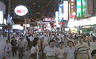 Our hotel (The Sofitel) was located right on a very busy section of Nanjing Road. On Satuday night cars and bicycles are prohibited from using this street, and Nanjing Road becomes a pedestrian mall attracting tens of thousands of shoppers and strollers. This shot was taken about 9 p.m.
