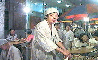 Would this fellow move you to purchase a meal? As I explored the food stalls, I was occasionally tempted to have a bite. (After all, I was well-fortified with doxycycline!) But then I'd glimpse food-sellers like this fellow--and think how marvelous that meals in China were included with our tour!