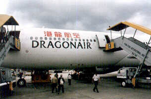 The next day, our travels in China came to an end. It was off to Hong Kong! All air travel in China was aboard Chinese airlines. Apparently, the government doesn't permit international carriers--like United, American, Lufthansa, British Air, etc.--to handle flights between Chinese cities. So, within China, we traveled on lines like Dragonair, shown here. This is how we made it to Hong Kong.