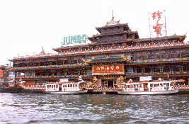 We decided to have a dinner there before leaving Hong Kong. For the meal, Dot and I travelled from Kowloon to the Jumbo by Star Ferry, double-decker bus, and eventually a restaurant-sponsored "courtesy" water-taxi. (We truly enjoy getting around foreign cities by local transportation, rather than a cab from the hotel.)