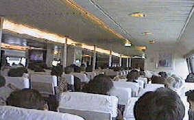 Inside, the ferry was a modernistic vessel with comfortable aircraft-style seats. The seats were even equipped with safety-belts! Here's how the interior looked: