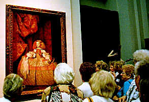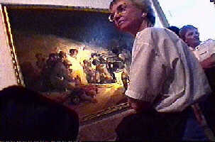 Even some of the renowned works by the masters reflect cruelty. Here a member of our group is listening carefully to commentary about a famous painting by Francisco de Goya. The painting, entitled "The Executions on Principe Pio Hill," made Goya into a kind of war correspondent. It depicted the savagery of the conflict when Spain was fighting Napoleon. |
