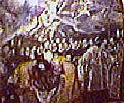 A short distance from the cathedral, there is a tiny chapel known as the chapel of Santo Tome. Here is the work which many critics consider to be El Greco's finest--"The Burial of Count Orgaz." Once again, cameras and video were forbidden. I'm afraid that my spy-cam representation of the work is not very good. |