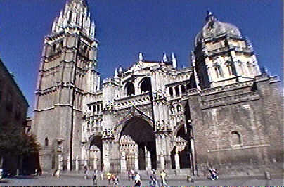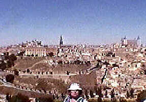 We didn't know what to expect. We knew that Toledo was legendary in days gone by for its superb swords. Toledo swords never broke in battle. But what would Toledo be like today? Would it be an old-fashioned Pittsburgh, an industrial-revolution Birmingham, a Gary, Indiana, a kind of Spanish "Steel City"--with foundaries and blast furnaces, etc.? Or would it be something else? We found Toledo to be a wonderful place that maintained its medieval character. A panoramic view of Toledo today looked much the same as when El Greco painted his cityscape of it in the early seventeenth century! El Greco's view of Toledo hangs in New York's Metropolitan Museum of Art. It's scarcely different from our view of Toledo some four centuries later! A little more congested to be sure, but still recognizable: