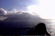 | In a short time, we were out in the straits. The Rock of Gibraltar was silhouetted in the morning sun. It was making its own weather, generating banks of clouds over its jagged peak. We were to discover that's a typical occurrence. |