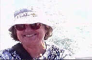 | Here's Dot, settled on the fantail of our ferry, enjoying the 17 mile crossing--which turns out to be quite a bit longer because of currents. The crossing takes about an hour or so. It is a pleasant ride. |