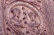 The next morning we had a tour of Salamanca. It's a very interesting place. The city hosts a university that is widely acknowledged to be the 3rd oldest in Europe. Columbus consulted its faculty to gain support for his entreaties to Queen Isabella. The celestial theories of Copernicus and Galileo were being pursued there when such thinking was suppressed as heresy elsewhere by the Catholic Church. As a consequence, the university has a long-standing reputation for academic freedom. Additionally, the Spanish conquistador, Hernando Cortez, was a student at the University of Salamanca. Many of the University buildings were emblazoned with intricate heraldry and elaborate carvings. An old lecture hall had been preserved as it was centuries ago. There we observed some initials and markings carved in the rough desks--but none that we could recognize as Cortez's. Still it was fun to search!