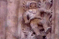 Salamanca has an "old" (Romanesque) and a "new" (Gothic) cathedral. The old cathedral dates back to the 12th century. The facade of one of the cathedrals recently had been refurbished. It's customary for the craftsman who does such a restoration to add something of his own to the work. For this reason, among the usual religious figures, there is also a whimsical representation of--AN ASTRONAUT!